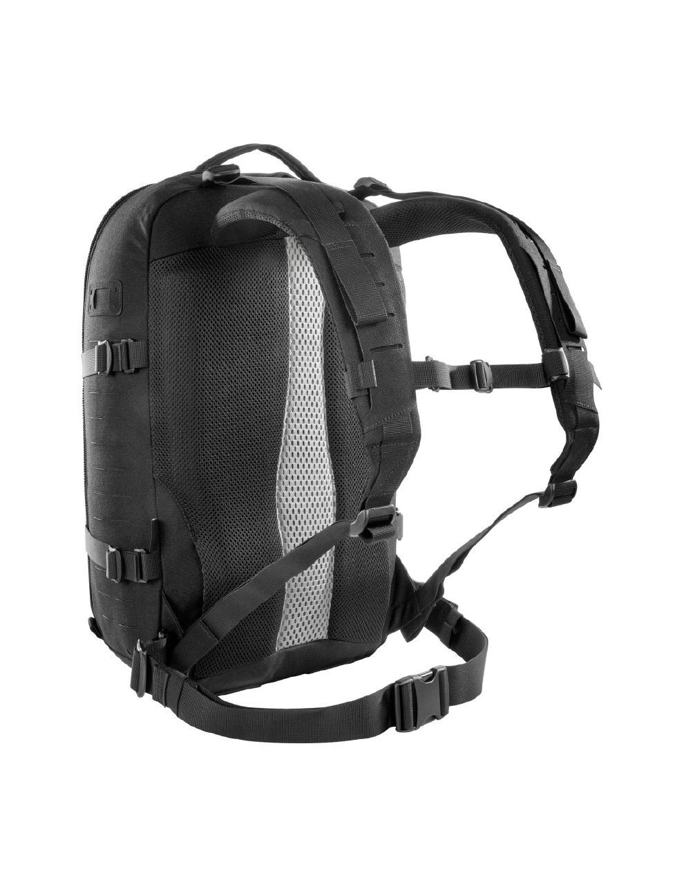 Laser-cut MOLLE systém na přední části a bocích umožňuje rozšíření o další výbavu. Batoh je připraven pro použití hydratačního systému a umožňuje uchycení stativu nebo holí.
